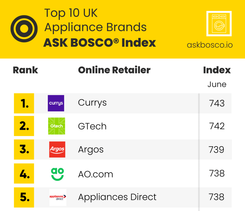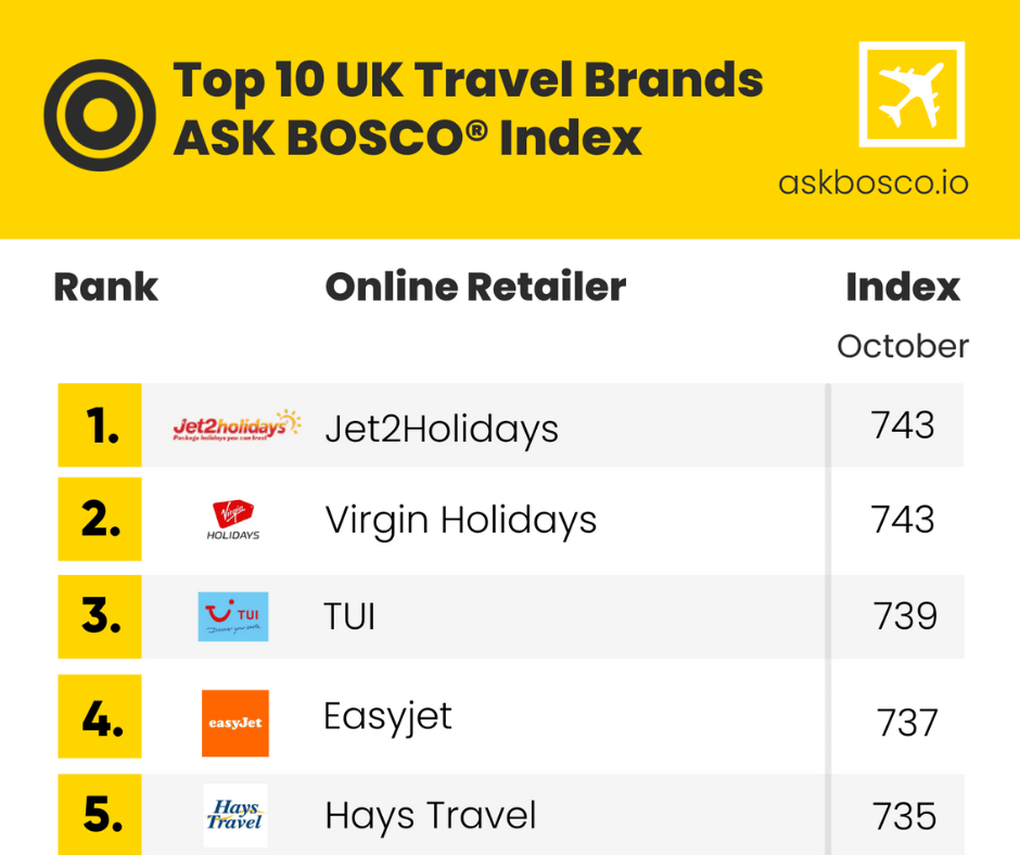 Each month, we run the scoring for a league table in a particular retail industry, leveraging our ASK BOSCO® Index