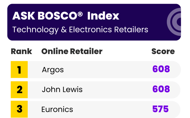 ASK BOSCO® Index ASK BOSCO® reveals the top online technology and electronics retailers in the UK The ASK BOSCO® Index ranks UK technology and electronics retailers by digital marketing efficiency.
