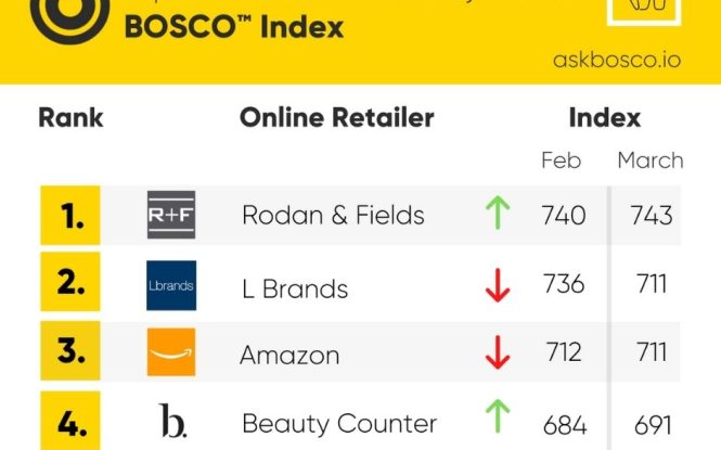 ASK BOSCO® Index Rodan + Fields ranked top US health & beauty retailer on the BOSCO Index league table
