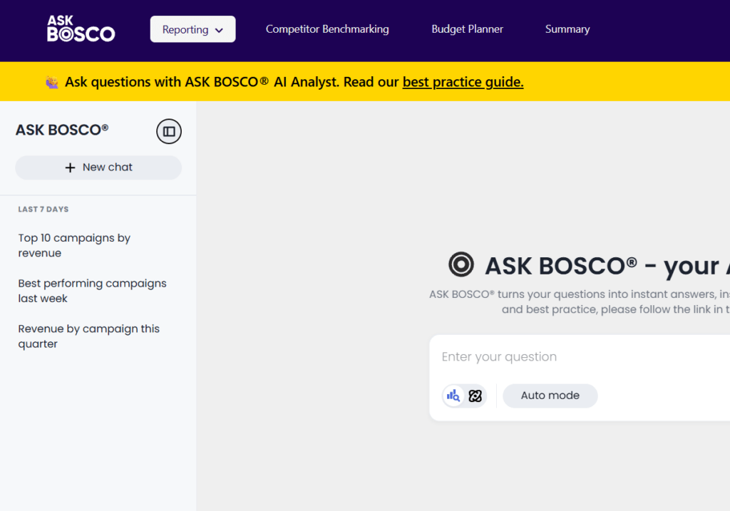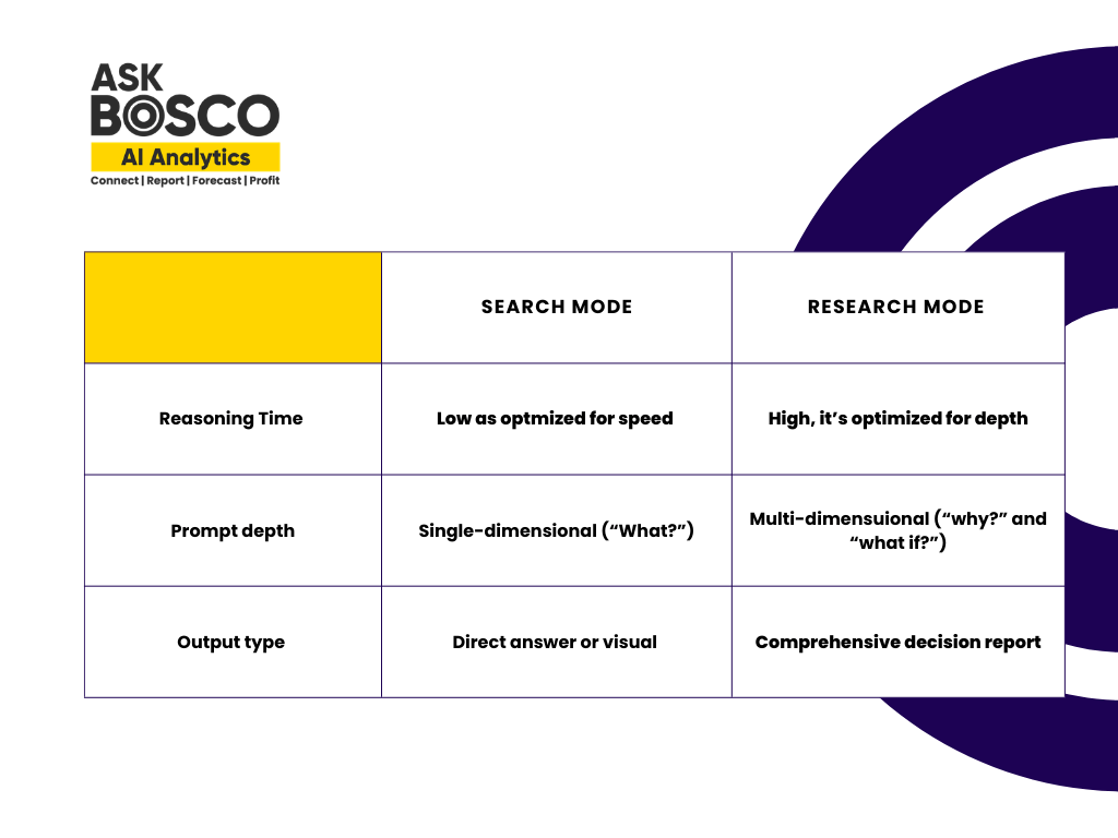 TLDR: ASK BOSCO® AI Analyst has had its biggest ever upgrade. Ask questions in plain English, get verified, visualized answers instantly, with deeper analysis, transparent reasoning, chat history, and two powerful modes to suit every type of question. No SQL or waiting.